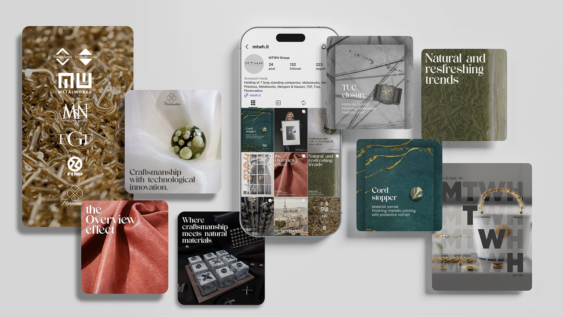 Sei aziende, decenni di storia, un unico sistema produttivo capace di trasformare il metallo in linguaggio creativo per il lusso. MTWH Group nasce come piattaforma integrata in cui tradizione manifatturiera e innovazione dialogano costantemente, dando forma a un ecosistema che affianca i brand più esigenti nel tradurre idee in prodotto. Il nostro intervento si è innestato proprio qui: nel punto di equilibrio tra memoria e futuro.
